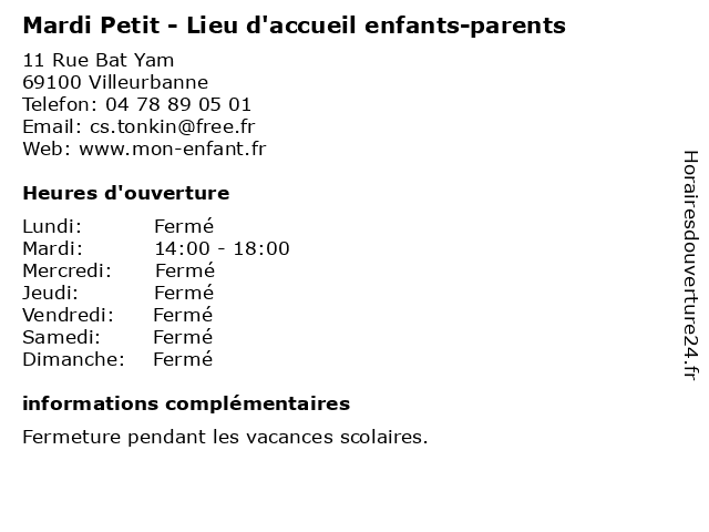 | Mercredi | Fermé |
