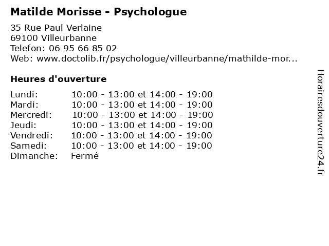 | Mardi | 10:00-13:00 et 14:00-19:00 |