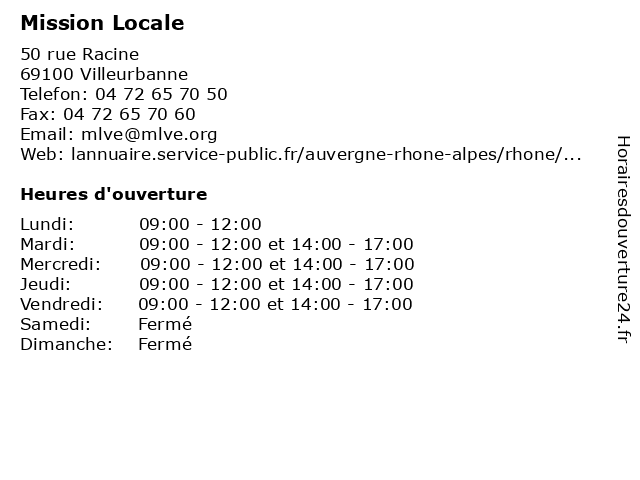 1 Mission Locale (Distance: 1,45 km) 4 allée Henri-Georges-Clouzot, 69100 Villeurbanne insertion, jeunes, locale, mission, professionnelle, villeurbanne 2 Mission Locale (Distance: 3,31 km) . Le Mairie, 32320 Montesquiou administration, assoc, locale, mission, services, services publics 3 Mission Locale (Distance: 4,57 km) 11 avenue Jean-Jaurès, 69150 Décines-Charpieu décines-charpieu, insertion, jeunes, locale, mission, professionnelle 4 Mission Locale (Distance: 5,64 km) 5 Rue Roger-Salengro, 69009 Lyon administration, assoc, locale, mission, services, services publics 5 Mission Locale (Distance: 5,79 km) 50 rue des Frères Lumières, 69140 Rillieux-la-Pape insertion, jeunes, locale, mission, professionnelle, rillieux-la-pape 6 Mission Locale (Distance: 5,98 km) 20 Rue Ampère, 69270 Fontaines-sur-Saône administration, assoc, locale, mission, services, services publics  |