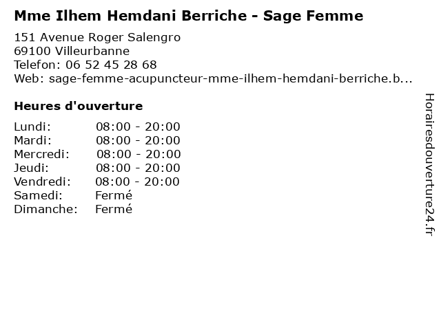 1 Ilhem Hemdani Berriche - Sage-femme (Distance: 1,27 km) 151 Avenue Roger Salengro, 69100 Villeurbanne berriche, femme, hemdani, ilhem, médecins, médicaments, sage, sage-femme, santé, secrétariat, spécialiste 3 MME Aumont Laetitia (Distance: 2,45 km) 151 Avenue Du Marechal De Saxe, 69003 Lyon 3ème aumont, laetitia, mme 4 Mme Atto Antoinette (Distance: 4,14 km) 3 Chemin Tony Garnier, 69120 Vaulx En Velin antoinette, atto, directe, mme, vente 5 Ilhem Fteiti-Brucaj - Psychologue (Distance: 6,70 km) 36 Rue Pierre Bouvier, 69270 Fontaines-sur-Saône brucaj, fteiti, ilhem, psy, psychiatre, psychologue, sante, soins 6 Ilhem Fteiti-Brucaj - Psychologue (Distance: 6,86 km) 8 Allée des Tullistes, 69130 Écully brucaj, fteiti, ilhem, psy, psychiatre, psychologue, sante, soins |