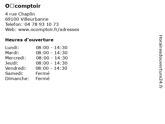 | Samedi | Fermé |