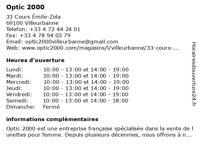 2 Optic 2000 (Distance: 2,74 km) 39 Grande Rue de la Croix Rousse, 69004 Lyon 2000, lunettes, optic, opticien, optique 6 Optic 2000 (Distance: 5,23 km) 214 Rue Marcel Mérieux, 69000 Lyon 2000, accessoires, lentilles, lunettes, montures, optic, optic 2000, opticien, solaire, verres, vision, vue |
