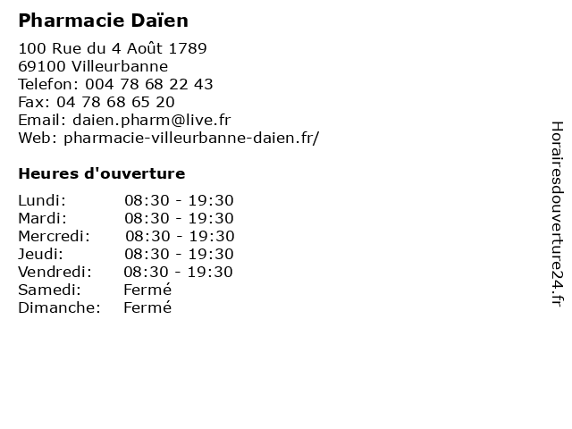 1 Pharmacie du Théâtre (Distance: 0,37 km) 35 Rue Paul Verlaine, 69100 Villeurbanne aromatherapie, du, médical, médicaments, paramédical, parapharmacie, pharmacie, santé, théâtre, traitements 2 Pharmacie Tolstoi (Distance: 0,38 km) 124 Cours Tolstoï, 69100 Villeurbanne aromatherapie, médical, médicaments, paramédical, parapharmacie, pharmacie, santé, tolstoi, traitements 3 Pharmacie Daviet (Distance: 0,43 km) 204 Cours Emile Zola, 69100 Villeurbanne aromatherapie, daviet, médical, médicaments, paramédical, parapharmacie, pharmacie, santé, traitements 4 Pharmacie Guillermond et Guichard (Distance: 0,74 km) 170 Rue Francis de Pressensé, 69100 Villeurbanne aromatherapie, et, guichard, guillermond, médical, médicaments, paramédical, parapharmacie, pharmacie, santé, traitements 5 Pharmacie de la Cité (Distance: 0,94 km) 17 Cours Tolstoï, 69100 Villeurbanne aromatherapie, cité, de, la, médical, médicaments, paramédical, parapharmacie, pharmacie, santé, traitements 6 Pharmacie Laporte (Distance: 1,10 km) 1 Cours Tolstoï, 69100 Villeurbanne aromatherapie, laporte, médical, médicaments, paramédical, parapharmacie, pharmacie, santé, traitements |