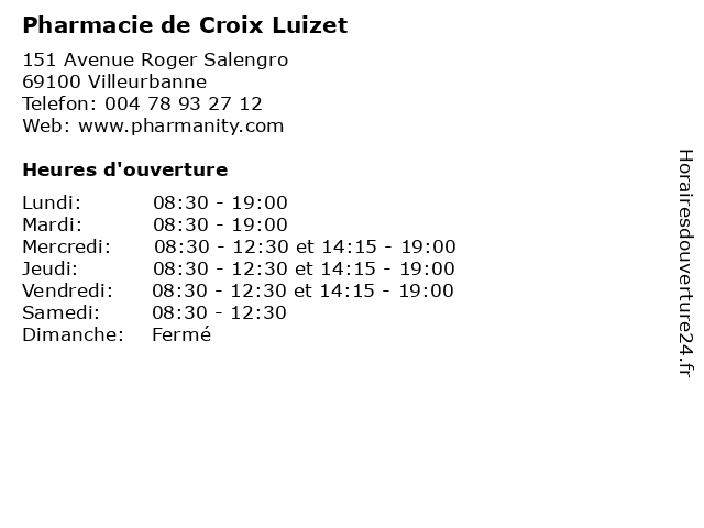 | Mercredi | 08:30-12:30 et 14:15-19:00 |