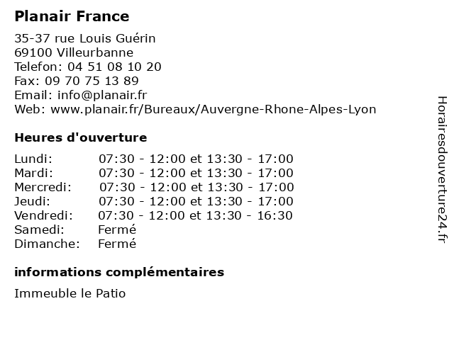 | Lundi | 07:30-12:00 et 13:30-17:00 |