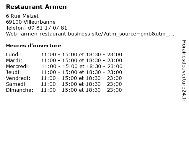 Lundi | 11:00-15:00 et 18:30-23:00 |