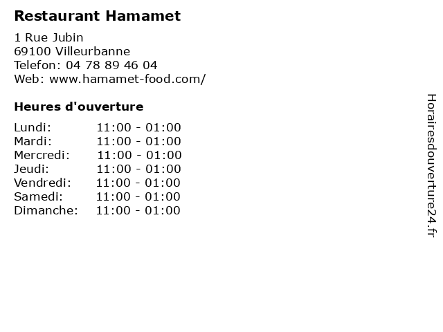 | Samedi | 11:00-01:00 |
