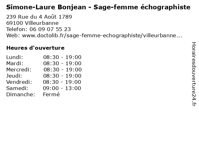| Lundi | 08:30-19:00 |