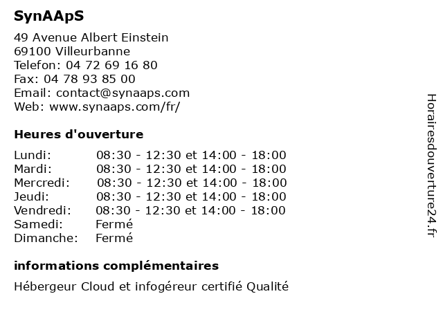 | Horaires d'ouverture | ||