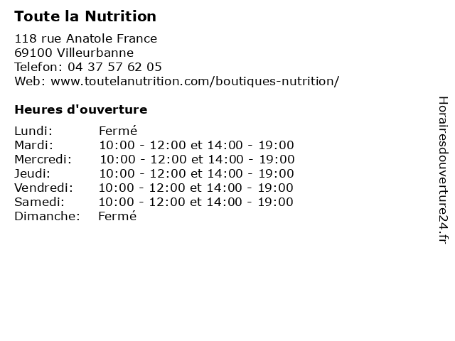 | Mardi | 10:00-12:00 et 14:00-19:00 |