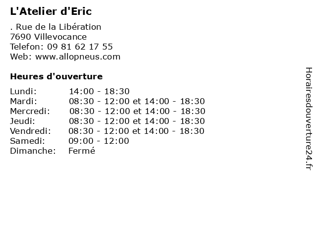 Termes de recherche pour L'Atelier d'Eric:automobile, garage, d', vente, moto, eric, l'atelier, atelier, l', pneus, montage, d'eric |
