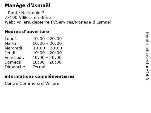 Termes de recherche pour Manège d'Ismaël:villiers, loisir, commercial, centre, manège, biere, d'ismaël |