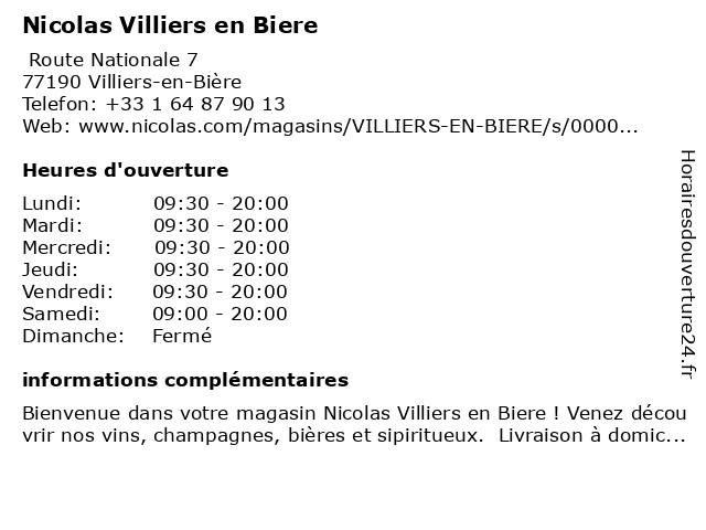 | Dimanche | Fermé |