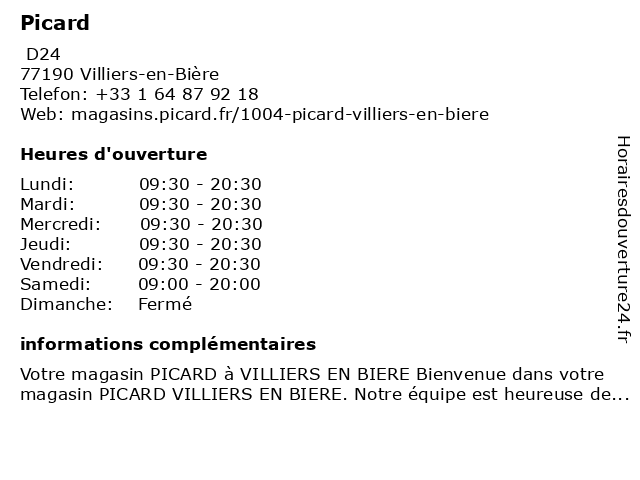 Votre magasin PICARD à VILLIERS EN BIERE Bienvenue dans votre magasin PICARD VILLIERS EN BIERE. Notre équipe est heureuse de vous accueillir et pourra vous conseiller avec professionnalisme et en...