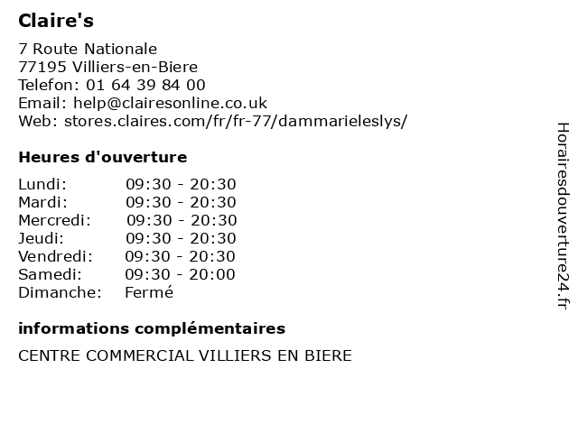 1 Claire's (Distance: 14,08 km) 3 Allée du Préambule, 77127 Lieusaint alimentation, beauté & santé, claire's, culture & loisirs, enfants, high-tech, maison & déco, mode, restaurants 2 Claire's (Distance: 16,62 km) 2 rue Jean Cocteau, 91100 Corbeil-Essonnes accessoires, barrettes, bijoux, claire's, fantaisies, mode, vernis 3 Claire's (Distance: 19,21 km) 2 Boulevard de l'Europe, 91000 Evry accessoires, beauté, bijoux, cadeaux, claire's, fantaisie, fashion 4 La Vie Claire (Distance: 2,33 km) 753 Avenue Marguerite Perey, 77190 Dammarie-les-Lys alimentation bio, claire, la, magasins bio, produits bio, vie 5 Claire Campestre - Orthophoniste - secrétariat (Distance: 5,71 km) 98 Avenue de Fontainebleau, 77310 Saint-Fargeau-Ponthierry campestre, claire, médecins, médicaments, orthophoniste, santé, secrétariat, spécialiste 6 Claire Campestre - Orthophoniste - secretariat (Distance: 5,71 km) 98 Avenue de Fontainebleau,, 77310 Saint-Fargeau-Ponthierry campestre, claire, médecin, médecine, médical, orthophoniste, pharmaceutique, secretariat, traitement |