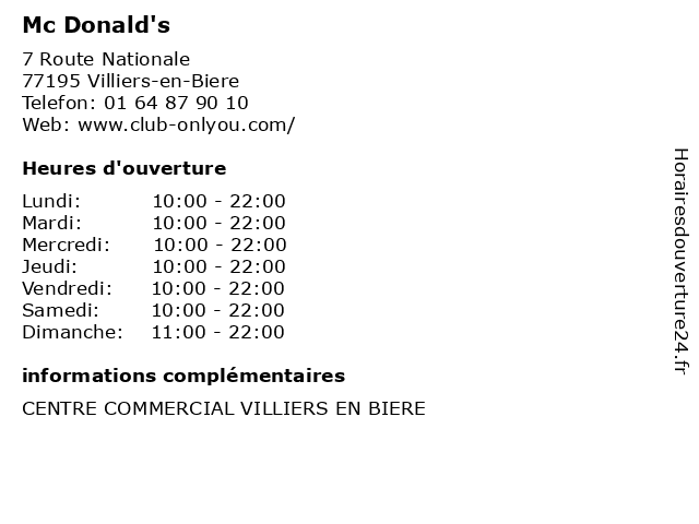 1 Mc Donald's (Distance: 2,84 km) n/a Villiers, 77190 Villiers en Bière boissons, donald's, mc, nourriture, restaurant 2 Legend MC Douglas (Distance: 12,77 km) 105 Grande Rue, 77300 Fontainebleau accessoires, boutique, douglas, legend, mc, mode, vetements 4 Mbobo Mouhounou Edmond Donald (Distance: 15,53 km) Chez Mr Nka Yvon Adoma Residence, 91100 Corbeil Essonnes donald, edmond, mbobo, mouhounou, restaurants 5 Agatha (Distance: 0,00 km) 7 Route Nationale, 77195 Villiers-en-Biere agatha, alimentation, beauté & sante, culture & loisirs, enfants, high-tech, maison & déco, mode, restaurants 6 Andre (Distance: 0,00 km) 7 Route Nationale, 77195 Villiers-en-Biere alimentation, andre, beauté & sante, culture & loisirs, enfants, high-tech, maison & déco, mode, restaurants |