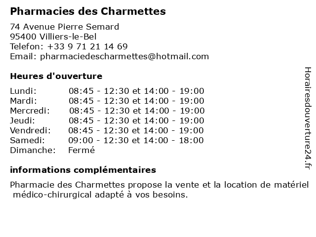 Lundi | 08:45-12:30 et 14:00-19:00 |