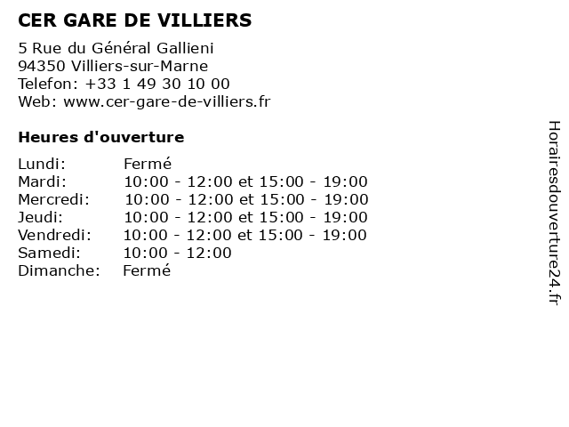 | Mercredi | 10:00-12:00 et 15:00-19:00 |