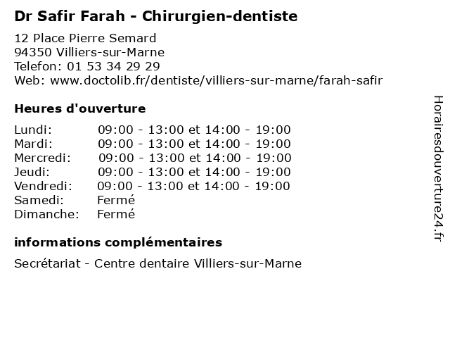 | Lundi | 09:00-13:00 et 14:00-19:00 |