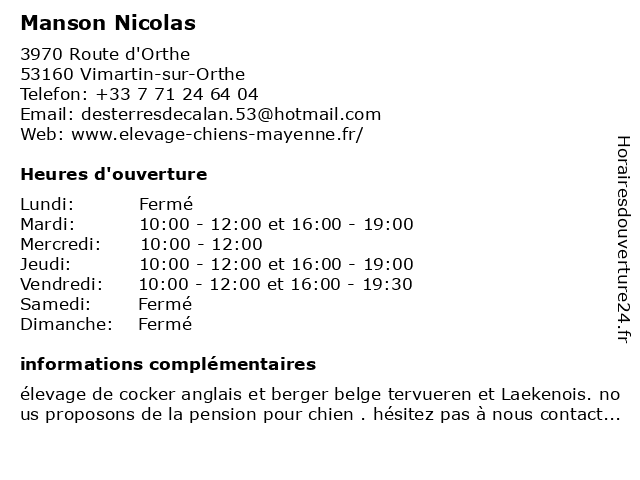 | Vendredi | 10:00-12:00 et 16:00-19:30 |