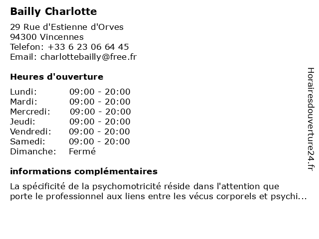 1 Marie-Charlotte Oddon - Ostéopathe (Distance: 0,00 km) 29 Rue d'Estienne d'Orves, 94300 Vincennes charlotte, marie, oddon, ostéo, ostéopathe, ostéopathes, soins 2 Dr. Caillet Charlotte - Ostéopathe (Distance: 0,15 km) 40 Avenue Aubert, 94300 Vincennes caillet, charlotte, docteur, dr., medecins, ostéopathe, sante 3 Charlotte Vieira - Masseur-kinésithérapeute (Distance: 1,52 km) 9 Avenue des Murs-du-Parc, 94300 Vincennes charlotte, kiné, kinésithérapeute, masseur, rééducation, soin, vieira 4 Charlotte Verriez - Hypnothérapeute (Distance: 4,12 km) 46 Rue de Paris, 93230 Romainville charlotte, hypno, hypnose, hypnothérapeute, sante, verriez 5 Maître Charlotte Debain - Avocate (Distance: 4,32 km) 4 Rue Michel Chasles, 75012 Paris avocate, avocats, cabinet, charlotte, conseils, contentieux, debain, juridique, justice, litiges, maître, services 6 Charlotte de Bailliencourt - Psychologue (Distance: 5,91 km) 29b Rue Monge, 75005 Paris bailliencourt, cabinets, charlotte, de, médecins, psychologue, secrétariat, thérapies |