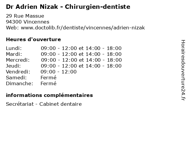 | Lundi | 09:00-12:00 et 14:00-18:00 |