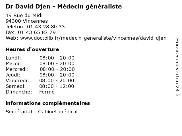 | Vendredi | 08:00-20:00 |