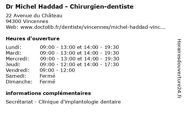 1 Dr Jean-Michel Samama - Chirurgien-dentiste (Distance: 0,20 km) 60 rue de Montreuil, 94300 Vincennes chirurgien, consultation, dentiste, docteur, dr, jean, med, michel, médecin, médecine, samama, traitement 2 Dr Michel Hoze - Médecin généraliste - Consultations (Distance: 0,41 km) 56 Avenue de Paris,, 94300 Vincennes consultations, dr, généraliste, hoze, michel, médecin, médecins, médicaments, rendez, sans, santé, spécialiste, vous 3 Dr Michel Hoze - Médecin généraliste (Distance: 0,41 km) 56 Avenue de Paris,, 94300 Vincennes dr, généraliste, hoze, michel, médecin, médecins, médicaments, santé, secrétariat, spécialiste 4 Michael Haddad - Psychologue (Distance: 0,64 km) 2 Rue Victor Basch, 94300 Vincennes cabinets, haddad, michael, médecins, psychologue, secrétariat, thérapies 5 Yaël Haddad - Psychologue (Distance: 1,50 km) 46 Avenue du Général de Gaulle, 94160 Saint-Mandé haddad, psy, psychiatre, psychologue, sante, soins, yaël 6 Dr Brenda Haddad - Chirurgien-dentiste (Distance: 2,20 km) 67 Boulevard Soult, 75012 Paris brenda, chirurgie, chirurgien, dentaire, dentiste, dr, haddad |