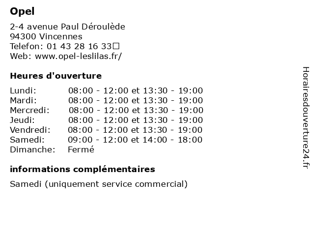 | Lundi | 08:00-12:00 et 13:30-19:00 |