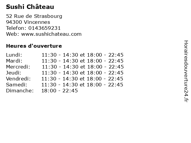 | Mardi | 11:30-14:30 et 18:00-22:45 |