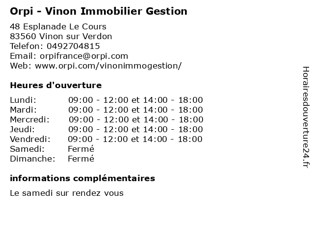 1 Orpi - Vinon Immobilier (Distance: 0,14 km) 570 Avenue de la République, 83560 Vinon-sur-Verdon achat, agence, appartement, gestion, immobilier, immobilière, location, maison, orpi, vente, vinon 2 Vinon Immobilier - Orpi (Distance: 0,39 km) 20 Avenue de la Paludette, 83560 Vinon sur Verdon achat, agence, agence immobilière, immobilier, location, orpi, vente, vinon 3 Orpi - Agence du Verdon (Distance: 7,63 km) - Avenue des Thermes, 04800 Greoux-les-Bains achat, agence, appartement, du, gestion, immobilier, immobilière, location, maison, orpi, vente, verdon 4 Orpi - Agence R. Bassanelli Forum (Distance: 11,57 km) 341 Avenue du Moulin Neuf, 04100 Manosque achat, agence, bassanelli, forum, immobilier, immobiliere, location, orpi, r., services, vente 5 Orpi Agence R. Bassanelli SA (Distance: 11,64 km) 33 Boulevard Charles de Gaulle, 04100 Manosque agence, bassanelli, orpi, r., sa 6 ORPI Agence R. Bassanelli Giono (Distance: 11,79 km) 12 Avenue Jean Giono, 04100 Manosque agence, bassanelli, giono, orpi, r. |