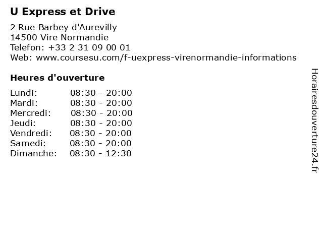 2 Carrefour Drive (Distance: 2,23 km) - Rue Colbert, 14500 Vire Normandie alimentaire, carrefour, courses, drive, en ligne, magasin 4 Volkswagen ( Express avec forfait ) (Distance: 3,38 km) . Rue de Caen, 14501 Vire automobiles, avec, concessionnaire, express, forfait, garage, motos, volkswagen 5 Cash Express (Distance: 3,50 km) - Avenue Bischwiller, 14500 Vire-Normandie accessoires, achats, bonnes affaires, boutique, cash, express, informatique, reventes, électroménager 6 Carrefour Drive Market (Distance: 4,30 km) . parc commercial de La Douitée, 14500 Vire-Normandie carrefour, drive, marche, market, services, supermarche |