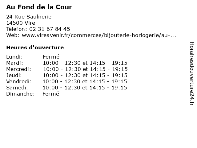 | Lundi | Fermé |