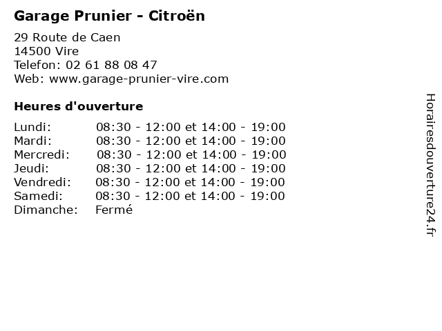 1 Garage Prunier - Citroën (Distance: 0,00 km) 29 Route de Caen, 14500 Viré accessoires, automobile, carrosserie, citroën, entretien, garage, pièces, prunier, réparation, vente, vidange 2 TotalEnergies - GARAGE PRUNIER (Distance: 0,03 km) 29 RTE DE CAEN, 14500 VIRE garage, gas station, prunier, station service, tankstelle, total, totalenergies 3 Simpois Prunier Genevieve (Distance: 11,46 km) Ld Les Maures, 50150 Chaulieu genevieve, prunier, restaurants, simpois 4 Garage Sas Josse - Citroën - Atelier (Distance: 11,65 km) . route de Vire, 14380 Saint-Sever-Calvados accessoires, atelier, automobile, carrosserie, citroën, entretien, garage, josse, pièces, réparation, sas, vente, vidange 5 Garage Sas Josse - Citroën - Accueil (Distance: 11,65 km) . route de Vire, 14380 Saint-Sever-Calvados accueil, automobile, citroën, concessionnaire, entretien, garage, josse, neuve, occasion, réparation, sas, vente 6 Garage Josse - Citroën - Atelier (Distance: 11,90 km) . Rue de Viré, 14380 Saint-Sever-Calvados atelier, automobile, citroën, concessionnaire, garage, josse, neuf, occasion, vente |
