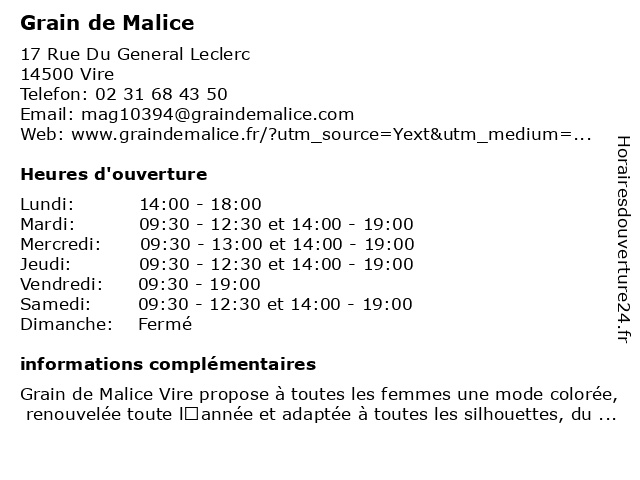 | Mardi | 09:30-12:30 et 14:00-19:00 |