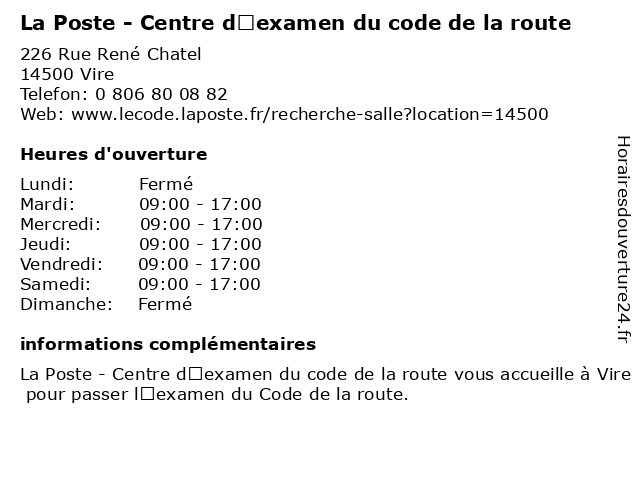 Termes de recherche pour La Poste - Centre d’examen du code de la route:poste, la, du, de, route, centre, code, d’examen, centre d'évaluation scolaire, école technique |