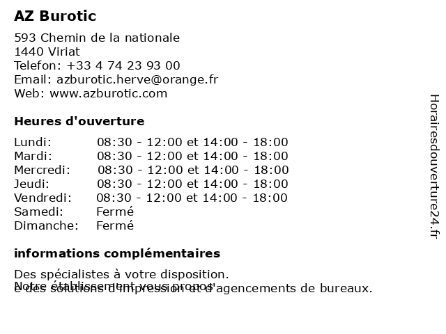 Lundi | 08:30-12:00 et 14:00-18:00 |