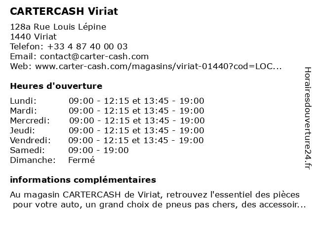 1 CARTERCASH Vinzelles (Distance: 31,97 km) Chemin Terre de la Cure, 71680 Vinzelles cartercash, vinzelles 2 CARTERCASH Saint-Priest (Distance: 59,41 km) 198 Route de Grenoble, 69800 Saint-Priest cartercash, priest, saint |