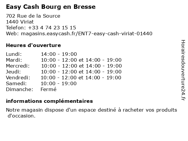 | Jeudi | 10:00-12:00 et 14:00-19:00 |