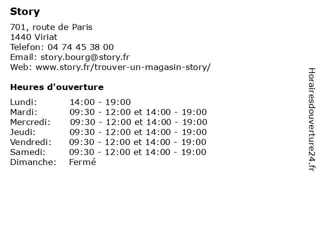 2 Story (Distance: 54,31 km) 23 Avenue du General de Gaulle, 69410 Champagne Au Mont D'Or aménagement, equipement, mobilier, story 3 Pizza Story (Distance: 56,67 km) 11 Avenue Antoine Dutrievoz, 69100 Villeurbanne cuisine, menu, pizza, restaurants, story, valroy 4 Story (Distance: 56,75 km) 23, avenue du Général de Gaulle, 69410 Champagne au Mont d'Or magasins, meubles.mobilier, story 6 Crêpe Story (Distance: 57,69 km) 26 Route de Genas, 69003 Lyon creperie, crêpe, cuisine, restaurant, restauration, story |