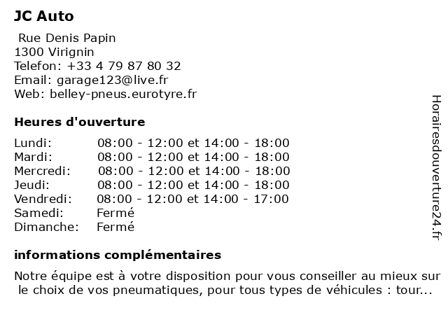 | Lundi | 08:00-12:00 et 14:00-18:00 |