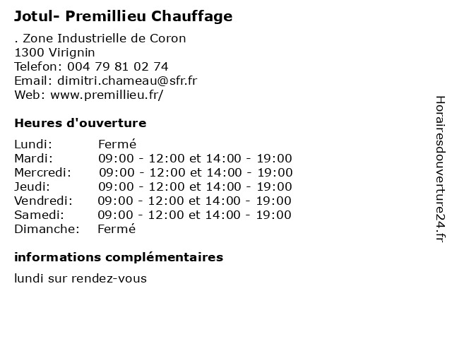 1 Chauffage Sanitaire des 3D (Distance: 0,48 km) 87 Rue de la Picardière, 01300 Virignin 3d, chauffage, des, sanitaire 2 PRO&Cie - Ent. Premillieu (Distance: 3,40 km) 74 Rue Charles Désiré Bigot, 01300 Virignin accessoire du vin, bamix, bosch, coutellerie, cristel, debuyer, electromenager, emile henry, ent., la rochere, lacanche, liebherr, microplane, miele, miyabi, omnicuiseur, patisserie, petit electromenager, peugeot, premillieu, pro&cie, staub, ustensile de cuisine 4 IR Sanitaire et Chauffage (Distance: 3,94 km) 142 Route de Parves, 01300 Belley chauffage, et, ir, sanitaire 5 Ck chauffage sanitaire (Distance: 11,56 km) 59 Impass de la Forge, 01300 Cuzieu chauffage, ck, sanitaire 6 Jotul Chambéry Poêles et Cheminées Scandinaves (Distance: 17,88 km) 143 Avenue de Villarcher, 73000 Chambéry chambéry, cheminées, et, jotul, poêles, scandinaves |