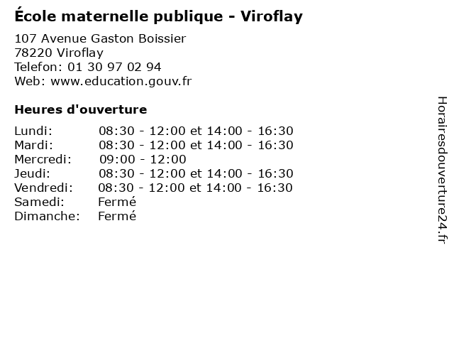 | Mardi | 08:30-12:00 et 14:00-16:30 |