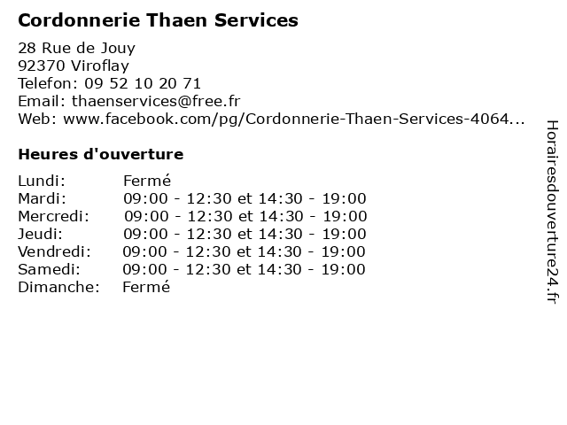| Mardi | 09:00-12:30 et 14:30-19:00 |