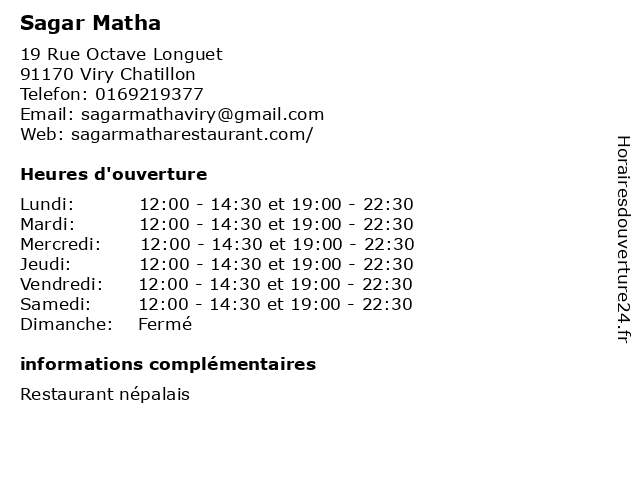 | Mardi | 12:00-14:30 et 19:00-22:30 |