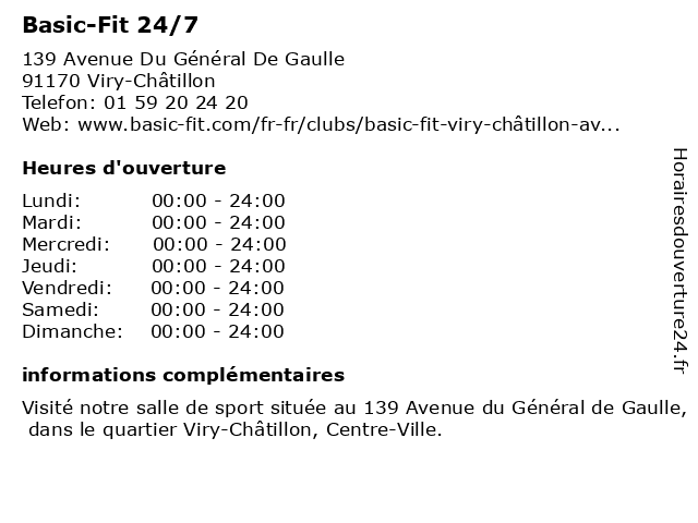 1 Basic-Fit 24/7 (Distance: 2,37 km) 2 Avenue Du Président Kennedy, 91170 Viry-Châtillon 24/7, basic, fit 6 |