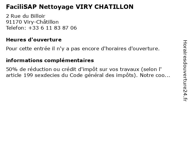 | Appeler FaciliSAP Nettoyage VIRY CHATILLON | |
