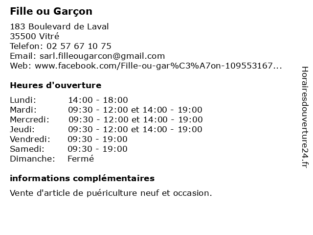 | Mercredi | 09:30-12:00 et 14:00-19:00 |