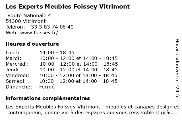 | Samedi | 10:00-12:00 et 14:00-18:45 |