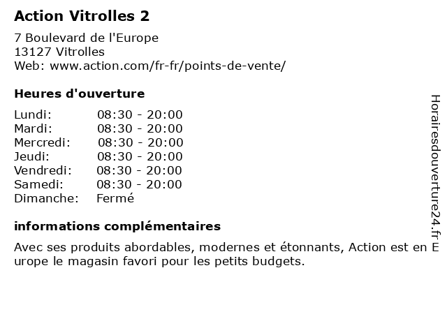 1 Action Vitrolles (Distance: 1,49 km) Avenue Denis Padovani, 13127 Vitrolles action, animaux domestiques, articles de sport, articles ménagers, boissons & alimentation, bricolage, cuisine, habitat, hobby, hygiène & beauté, jardin, jouets, mode, multimédia, papeterie & bureau, vitrolles, voyages 2 Action Saint-Victoret (Distance: 2,76 km) Avenue du 8 Mai 1945, 13730 Saint-Victoret action, animaux domestiques, articles de sport, articles ménagers, boissons & alimentation, bricolage, cuisine, habitat, hobby, hygiène & beauté, jardin, jouets, mode, multimédia, papeterie & bureau, saint, victoret, voyages 3 Centre Communal d'Action Sociale - CCAS (Distance: 5,11 km) 32 Avenue Camille Pelletan, 13340 Rognac action, ccas, centre, communal, d'action, sociale 4 Centre Communal d'Action Sociale (CCAS) (Distance: 7,00 km) 8 Avenue du Général Leclerc, 13170 Les Pennes-Mirabeau activite, aide, caisse, ccas, centrale, centre, communal, d'action, restaurants, sociale 5 Action Sport (Distance: 9,38 km) 303 rue Jean-Pierre Saez, 13100 Aix-en-Provence action, coaching, salle, sport, électrostimulation 6 Action Les Pennes Mirabeau (Distance: 9,46 km) Rue Pierre Pierrel, 13170 Les Pennes Mirabeau action, animaux domestiques, articles de sport, articles ménagers, boissons & alimentation, bricolage, cuisine, habitat, hobby, hygiène & beauté, jardin, jouets, les, mirabeau, mode, multimédia, papeterie & bureau, pennes, voyages |